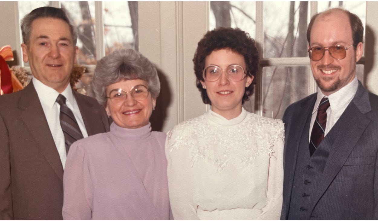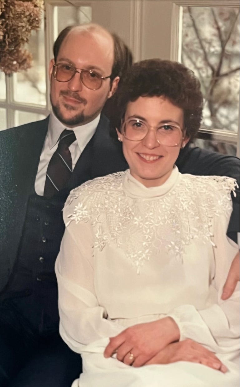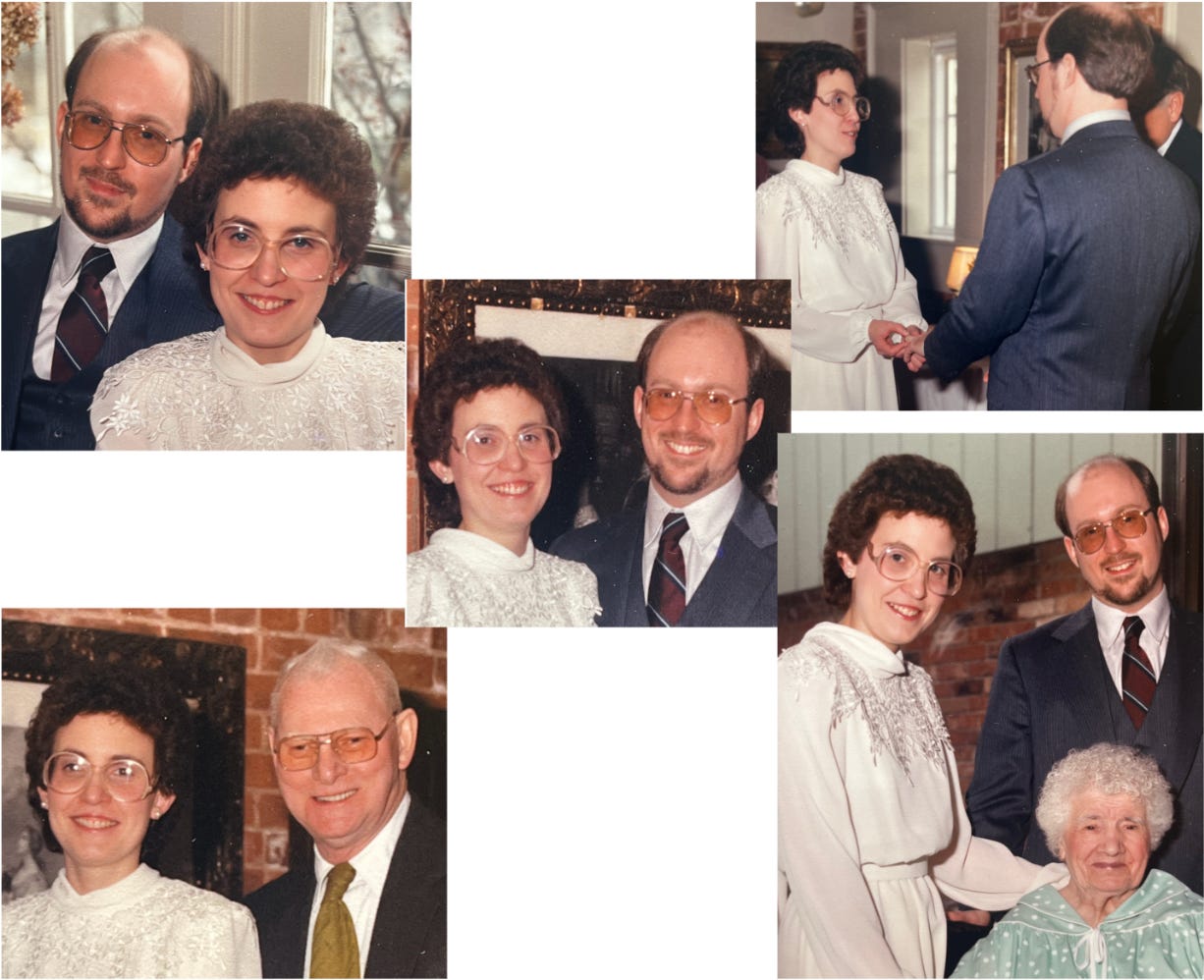 By the fall of 1987, we were moving toward making our arrangement “permanent.” We even looked at a few rings. One November weekend, right around my birthday, Ed approached me with a small box and, on bended knee, asked me to be his wife.