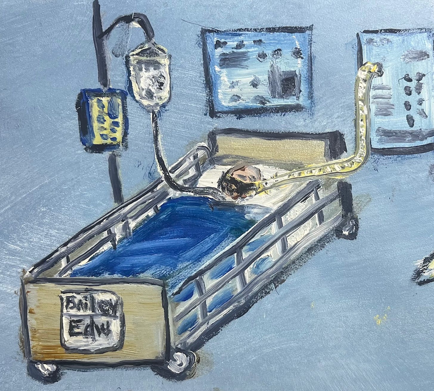 In the dark room, he lay motionless except for the rising and falling of his chest, which was orchestrated by an array of tubes and wires. Bags of IV solutions on poles with beeping controllers lined either side of his bed. Rows of numbers flashed and reloaded constantly on the screen above him, indicating any decrease in heart rhythms and his oxygen level. I stared so hard at those numbers, trying to use the force of my mental energy to make them rise.