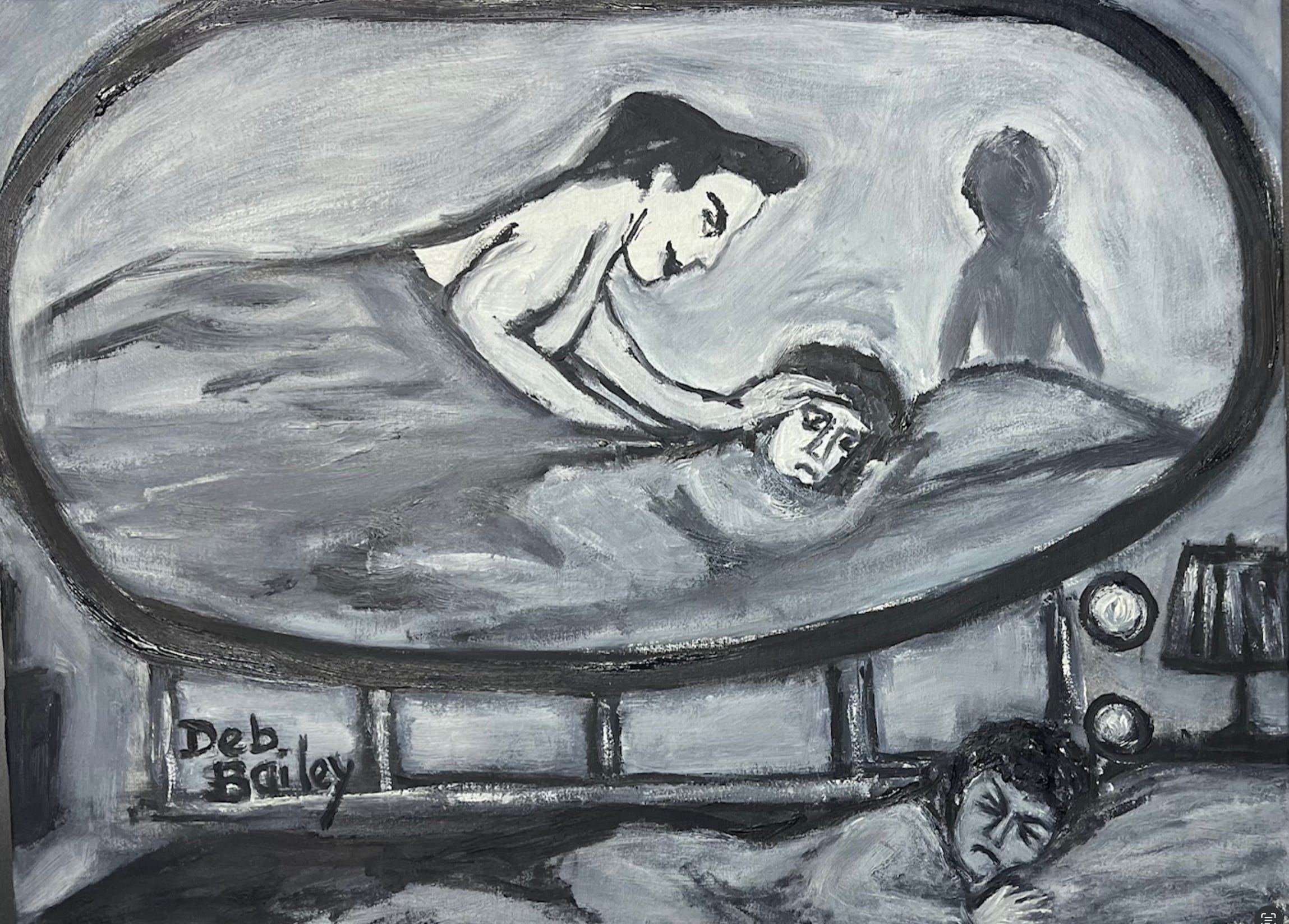 My son was restless. I put my hand on his leg to comfort him. He slowly relaxed and dropped off to sleep. I tried to lie down, but my heart was pounding so hard, and I was shaking. I had to sit up. So I closed my eyes and breathed deeply, trying to calm down.