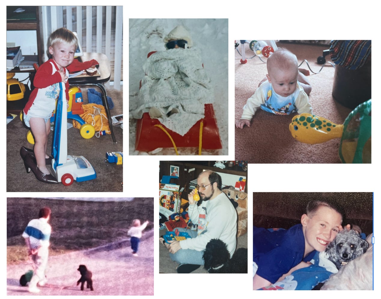 One unsettling thing was introducing the dogs to our new addition. While Jess, the younger female poodle, was more “bouncy curiosity” as she sniffed at the cradle, Charlie, the territorial and jealousy-prone male, seemed unhappy. Yet another harbinger of things to come. I shrugged it off as his hip giving him trouble. And it was. But I never felt he would have adjusted to the baby, no matter what.