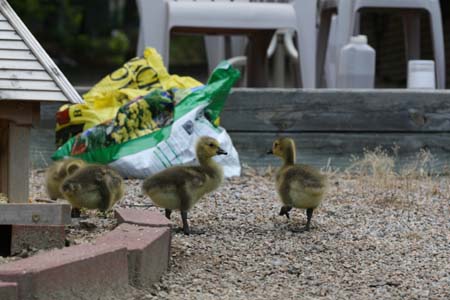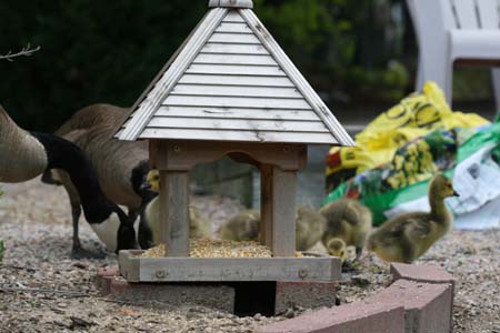 As to goslings, they are a joy. When life seems too stressful or hectic, just watching their simple appreciation of cracked corn in my ground level feeder, is a reminder of what’s really important in life. The 5 of them will sometimes even crawl into the feeder and fall asleep on the pile of corn. Not a bad life!