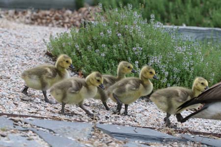 If the 5 goslings the other morning weren’t enough of a gift, this morning my husband looked out the back window and said “There’s a SECOND geese family and they have babies too!”