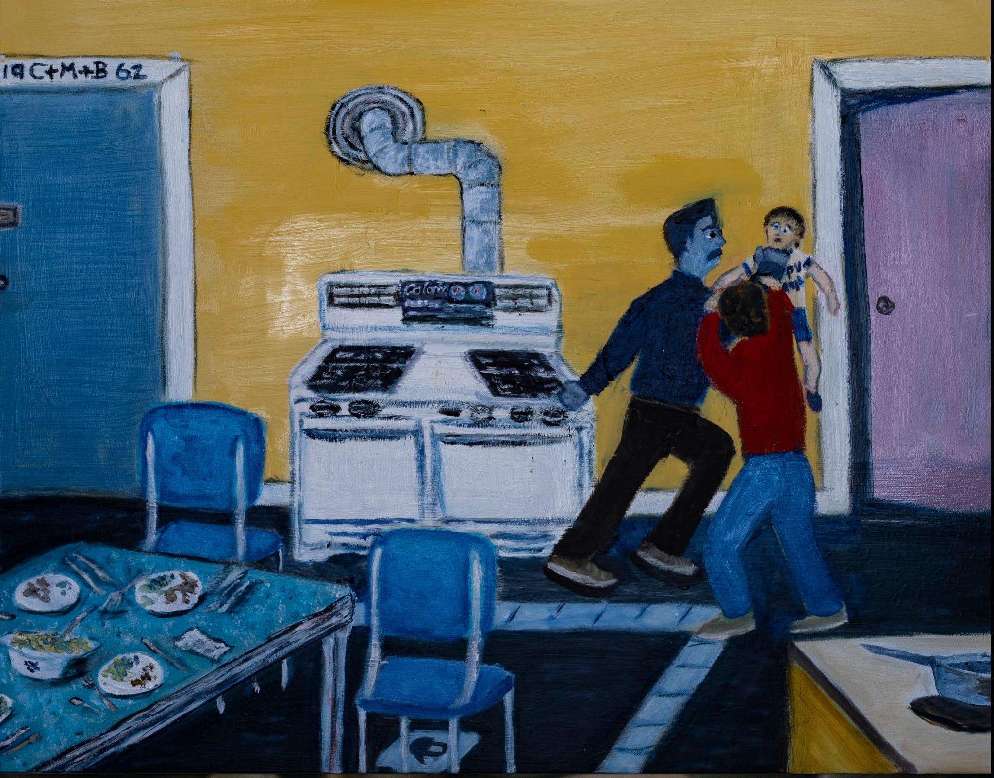 Painting of yet another childhood supper time where dad lost his temper and pinned me to a wall by my throat
