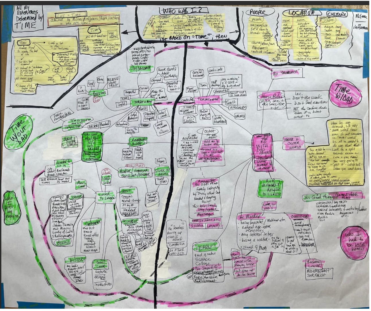 The biggest insight was the right side — the “Times of Dad.” So, so, so, much pink. Everything that went on whenever he was around was all-consumed by him. I could not be me. I didn’t dare be me. And I didn’t know any different, nor would I have known to question it. I just learned how to live in it because “that was life.”