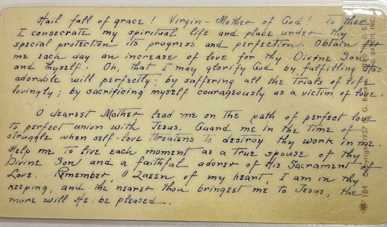 While I’ve never felt the depths of her love for her choice in life, I admired her commitment to it. I was in awe of someone who could FEEL the things she wrote on her personal inspiration card in her prayer book: