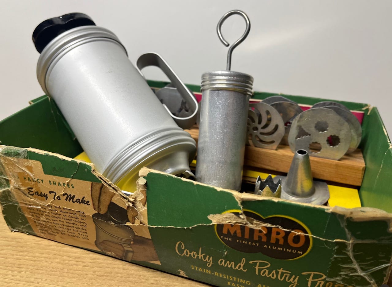 Mom’s use of items seemed to have an “ancient wisdom” kind of knowledge behind them. Certain tools were only used for certain jobs. There was the freezer defrost knife with the two-pronged ends that made it most effective for spearing those melting chunks of freezer ice. And of course, the white ceramic container that was used only for the doughnuts.