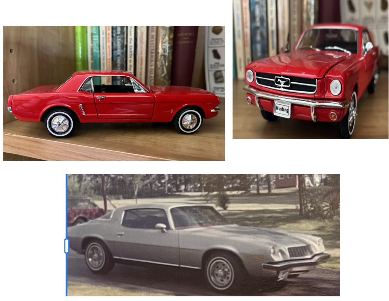 Later, I would long for the 1968 royal blue Mercury Cougar that one of my high school teachers had, as well as the Corvette a friend of mine had. While that one was out of my price range, and it was too late for the ’66 Mustang or the ’68 Cougar, when I graduated from college, I did get myself a brand new 1977 silver Camaro with red interior. I wanted a car that screamed speed and style, and that looked like a bullet shot from a gun coming down the road. Later, sick of paying high insurance and taxes on it, and hating how it handled when driving in the snow, I moved on to a Honda hatchback, which I loved for other reasons. While not as exotic, it did have a 5-speed manual with a stick shift on the floor, so that made it fun. And at least once in my life, I got to indulge that sports car fantasy.