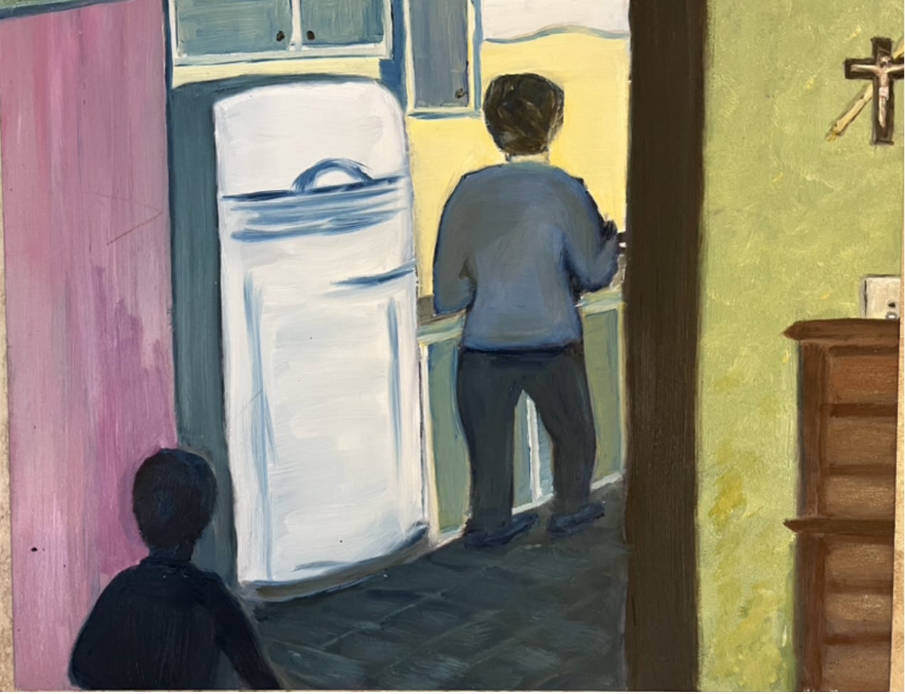 While he went to change from his office clothes, my mother would be finishing up at the stove, and the rest of us were supposed to be setting the food on the table. If he was in a bad mood, this was especially critical so as to keep things from deteriorating. So for sure, it was all hands on deck, and I stayed in the kitchen. Too many nights, I’d be in the line of fire soon enough. No point in risking it any sooner than necessary.