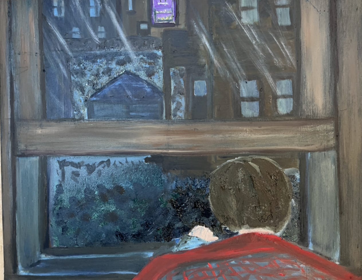 I think it was a plant light, as I could make out some racks and what looked like trays of plants in the window. It would make sense, then, that the light might glow at the same time every night for them. Whatever it was, I didn’t care. I only know that I would stare into that purple light for a long time, and just get lost in it.