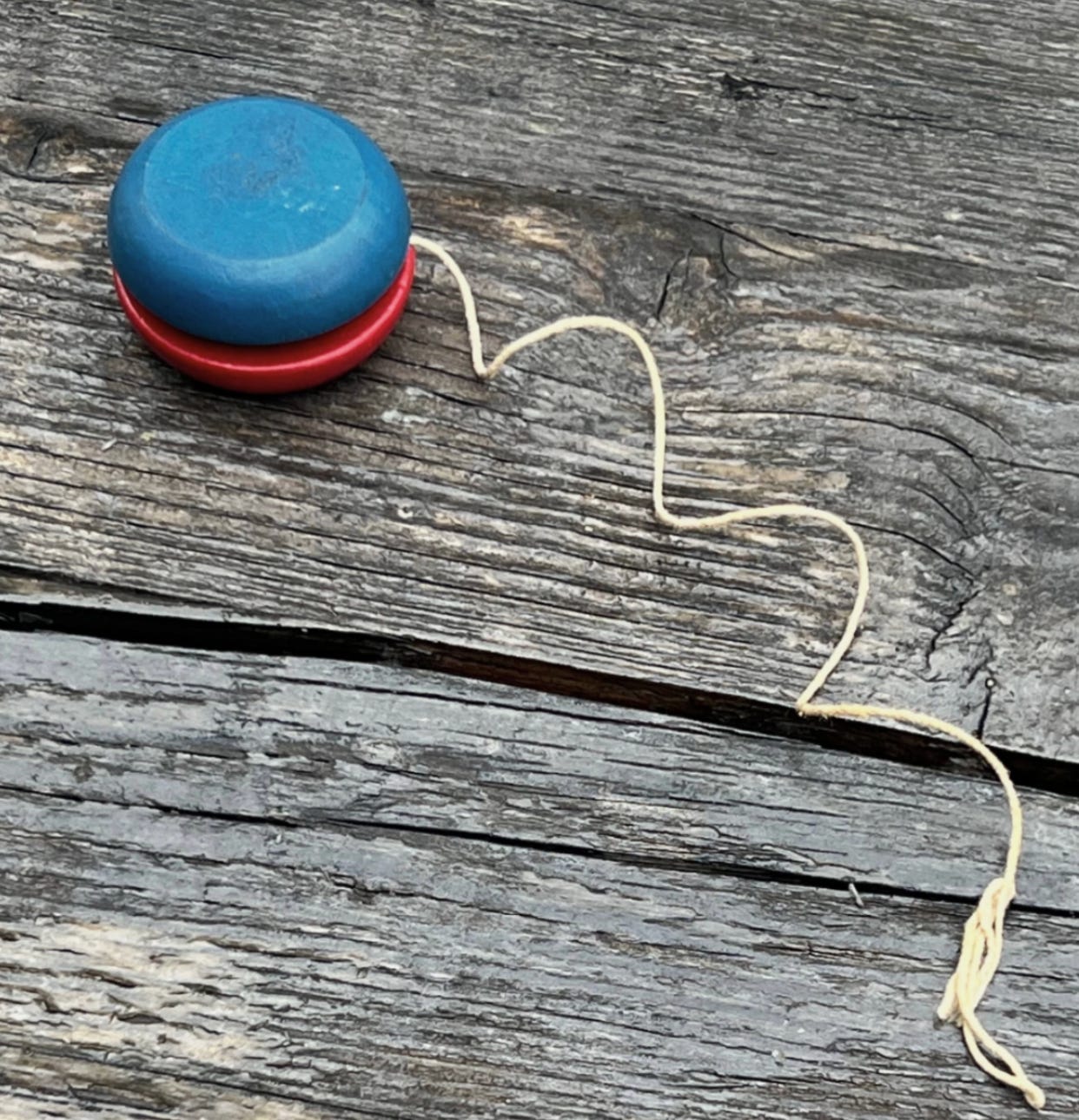 Yet we were happy just to keep that disc going up and down as long as possible. You could feel the initial energy in the string as you whipped the wooden disc downward, then felt that disc shoot right back up.