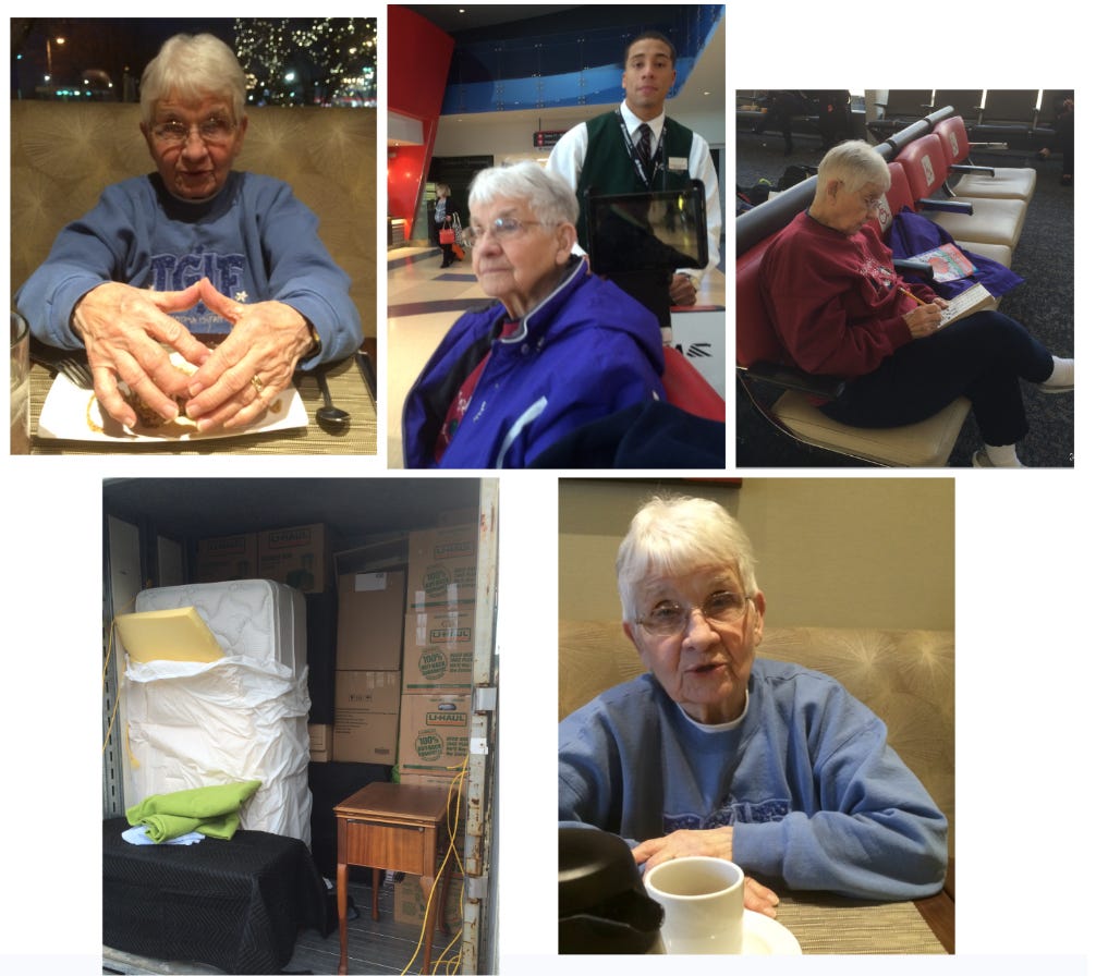 After that, we began a series of conversations about her needing to be closer to one of us. Given her age and especially some new health issues, we were concerned that if we waited too long, it might be impossible for her to make such a move. And we didn’t want her there alone, ill.