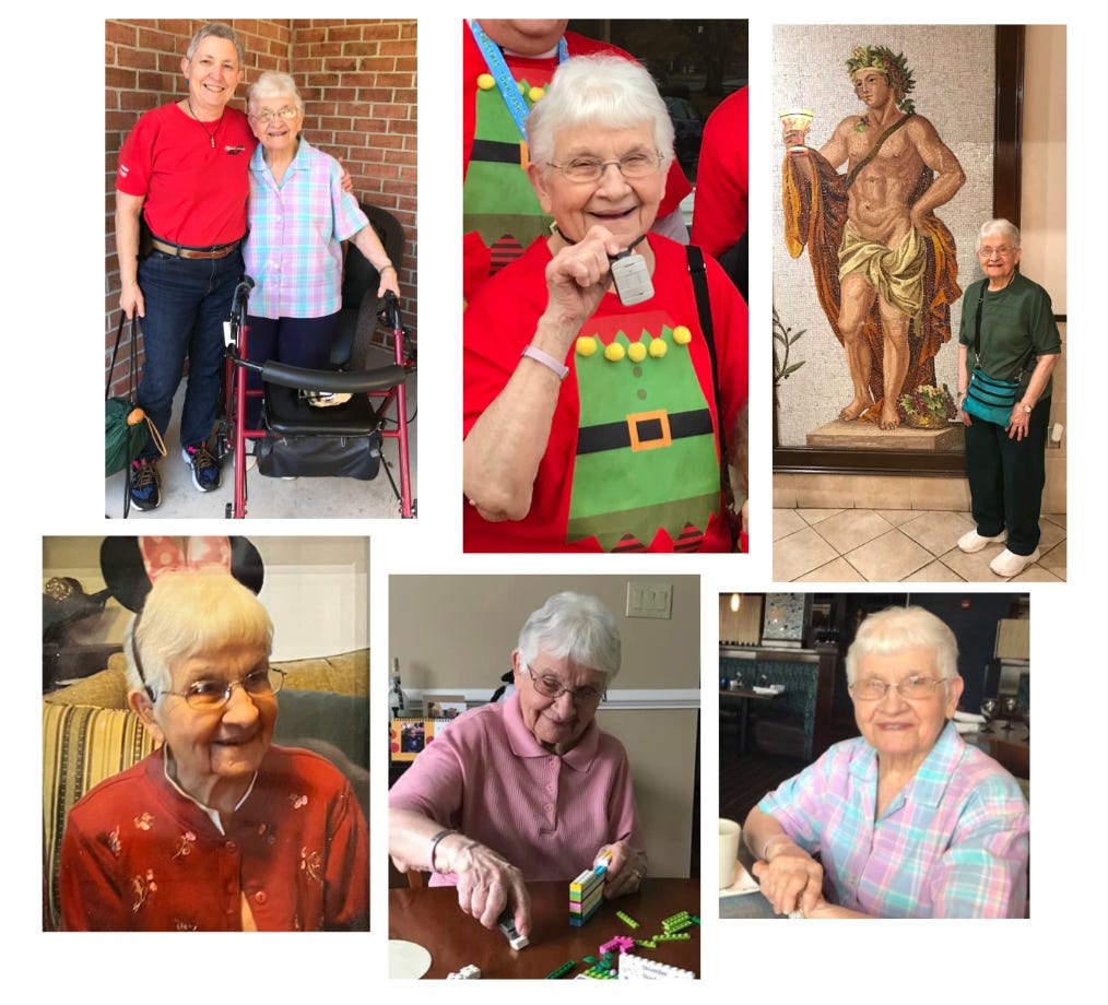Sometimes, especially when she first moved from Pennsylvania, she was kind of grumpy and refused to participate in things, even things she loved. I suspect that was payback for moving her. And…I can appreciate that after Dad died, she was living on her terms in Pennsylvania. While it was life, age, and health that forced this change, I can understand if she just folded her arms and refused to be happy about things. And no doubt being closer to one of us probably cramped her style…which also no doubt worked both ways.