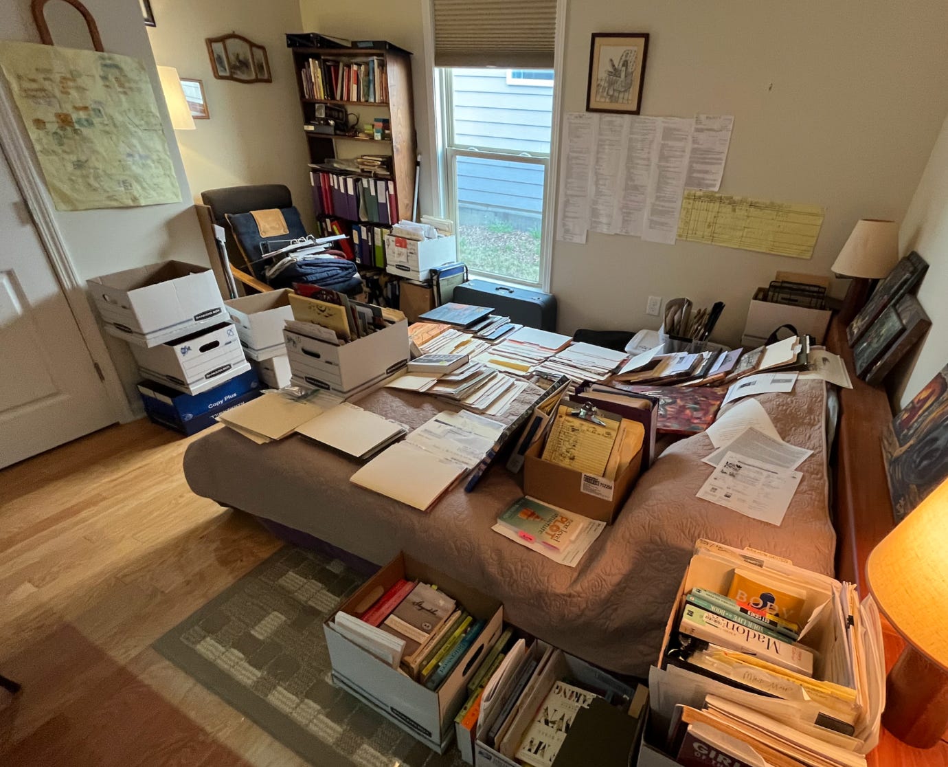 Each folder, each note, is an essential ingredient for the “cake” I am making – this book. Transforming them into a “baked cake” needs soulful processing.