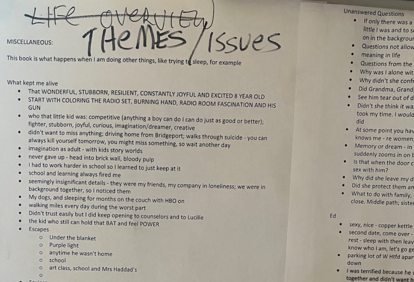 With such a weighty mission, the entries for this last section will be slower in coming. I need to think, dream, chew on things. This last part of the book will be wrestling with file folders full of questions scribbled on strips of paper from thoughts catalyzed during the writing process. So, I need to sit with each one and “listen” to what it is telling or asking me.
