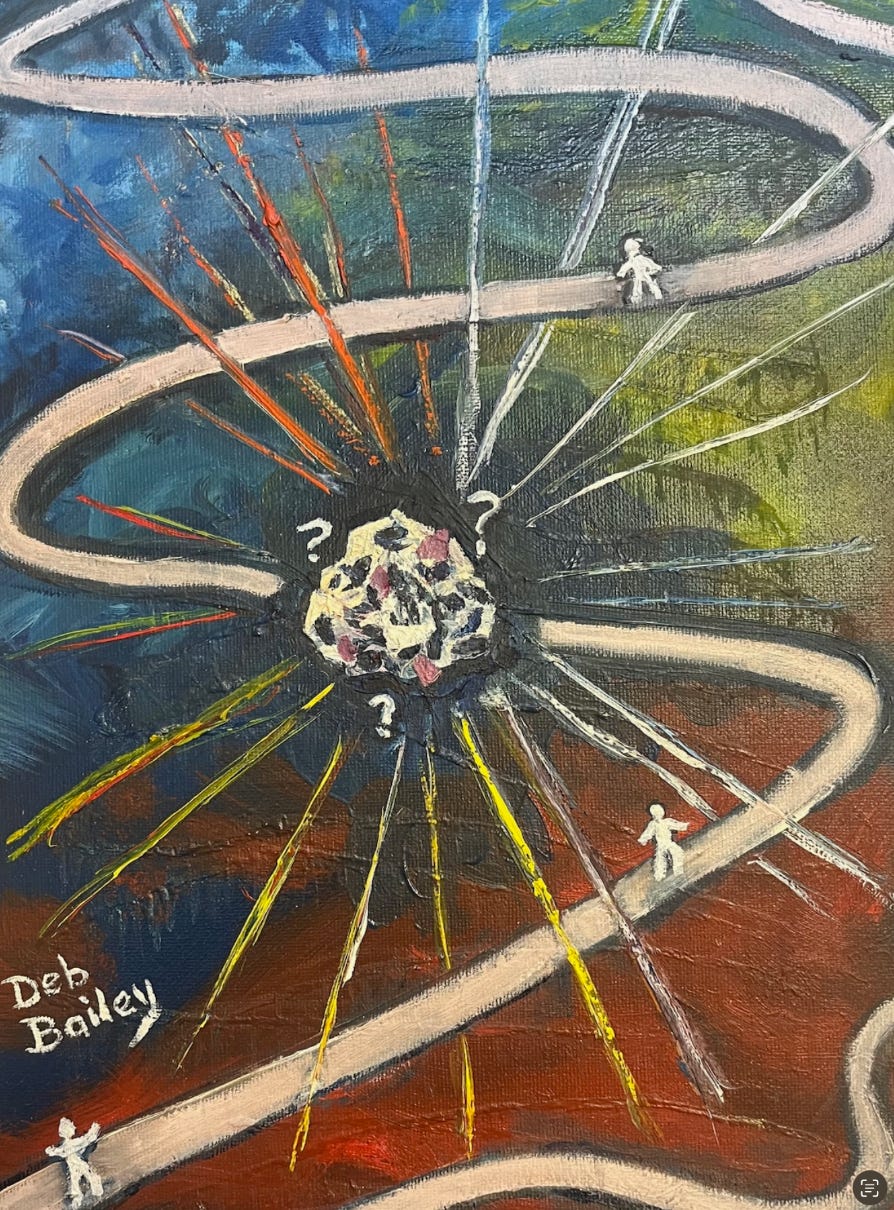 Well, none of us is ever “completed,” no matter what our background is. But we can always be moving toward “more complete.” It suddenly occurred to me that what I thought was the “normal process” – that straight-line progression down the highway of life — was the error. Maybe all of us, if we are open to continuing to learn and grow, are MEANT to “circle back” and revisit those same events?