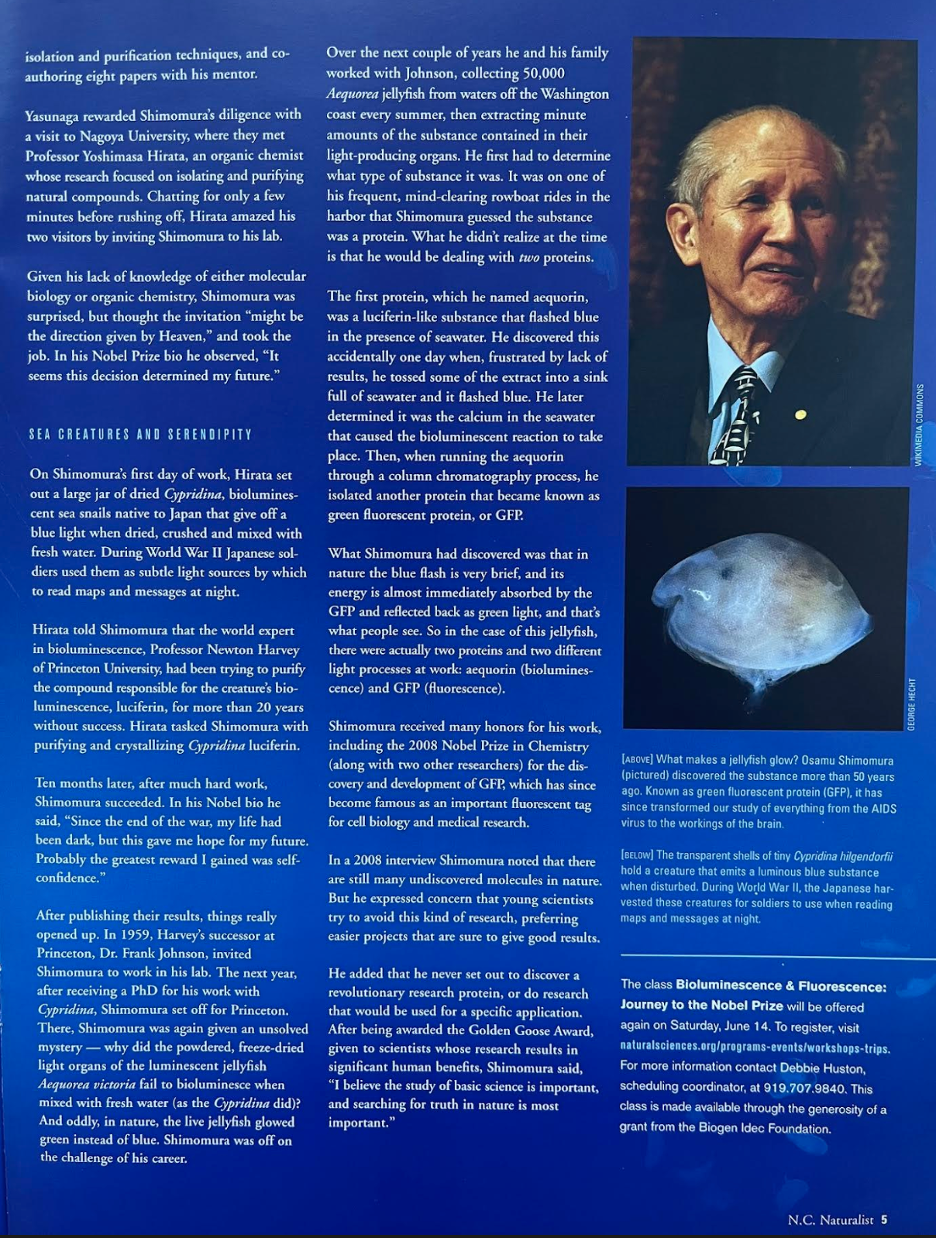 - The North Carolina Naturalist: “Bioluminescence and Fluorescence: The Search for Truth in Nature,” (article), Vol. 22, No. 2, Spring 2014