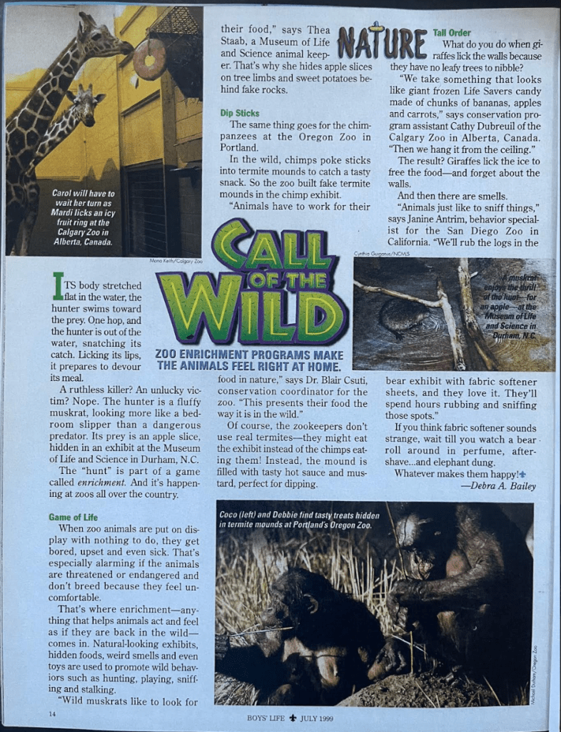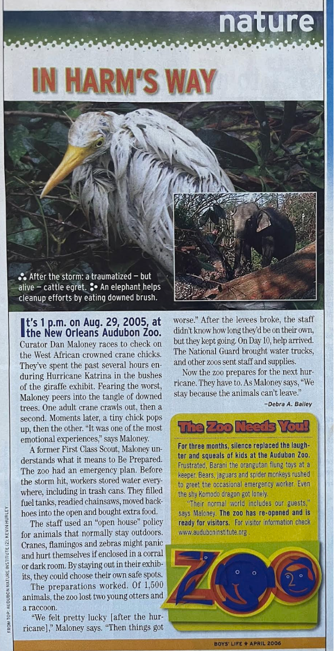- Boys’ Life: “In Harm’s Way,” April 2006.