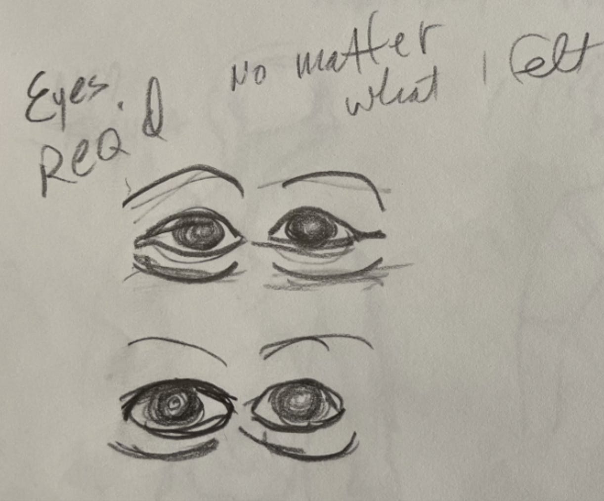 Home was still the same — more and more angry fights between my parents, and Dad was still pursuing me. Even as I was still terrified of his rage, I was equally exhausted with putting up with it all. And so guilty about what this had to be doing to my mother. I found it hard to believe she didn’t notice how he fawned all over me and treated her so poorly. I had reached the point where no matter how he spun it, it just felt more and more wrong. I was the person always between them and I hated it.