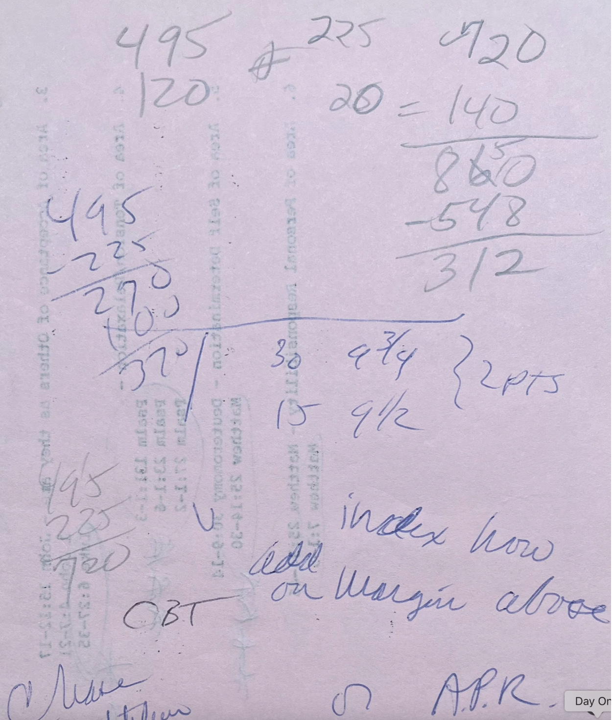 Looking back from now, I was surprised to see just how quickly I mobilized on that idea. On the back of one of the handouts from that first seminar, I had jotted down a bunch of notes regarding a mortgage. I had called a few banks and spoken to one woman in particular who was very helpful. She explained about mortgage points, indexes, and how a variable rate mortgage worked. After calculating costs, that one actually seemed possible.