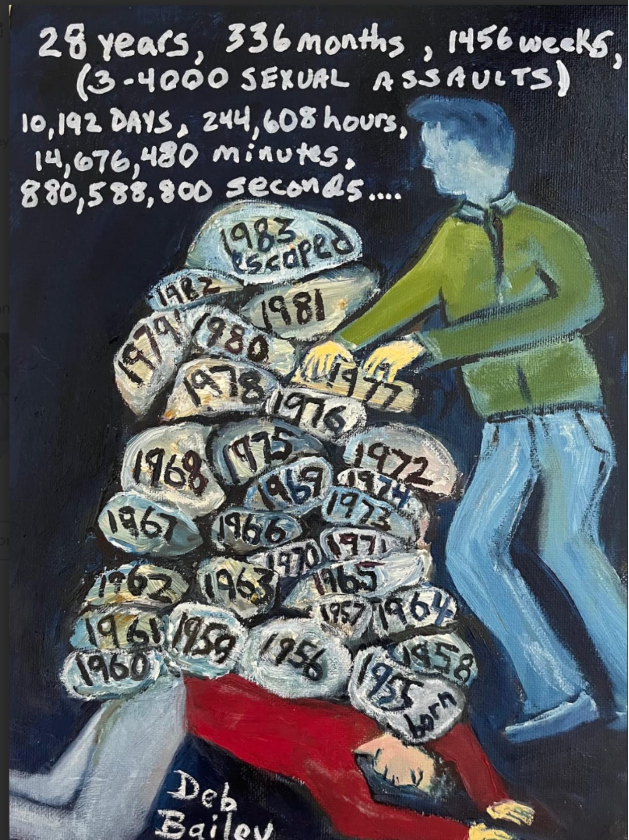 For years, I especially hated my teen and young adult self. But in doing these paintings, I then did the math for how many thousands of times over the years, from infancy to 28, that I was assaulted — physically, mentally, verbally, and sexually, I am now more upset that I judged me so terribly. That child, and teen, and young adult were doing the absolute best they could in that moment.